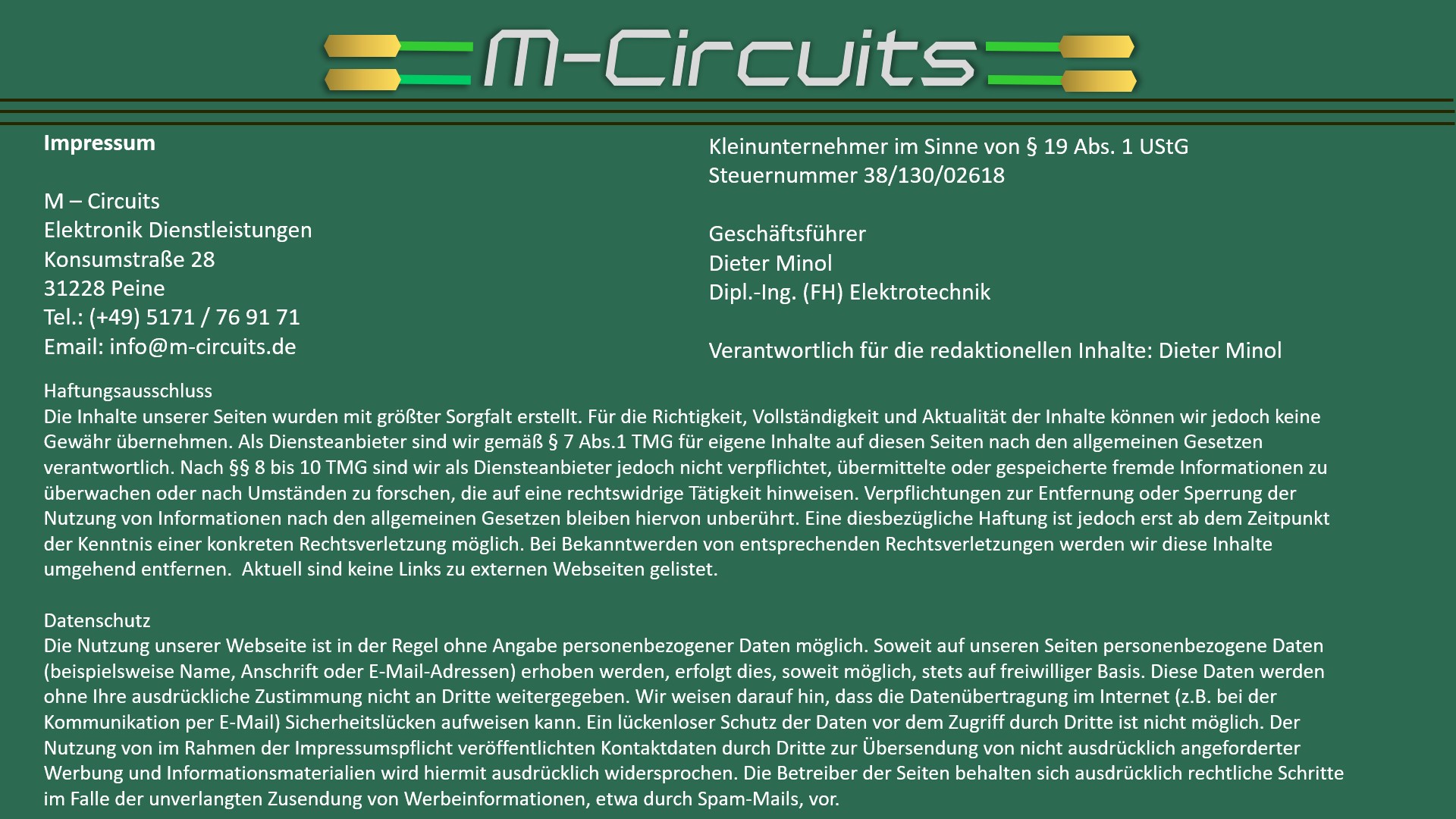 --- Impressum / Datenschutz ---